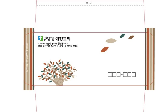 120g모조로 교회이름과 주소 연락처 우편번호 교단마크 등이 인쇄가