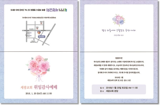 주소와 교회이름 전화번호가 인쇄됩니다.