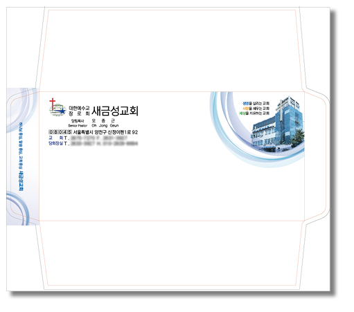 120g모조로 교회이름과 주소 연락처 우편번호 교단마크 등이 인쇄가
